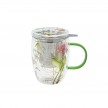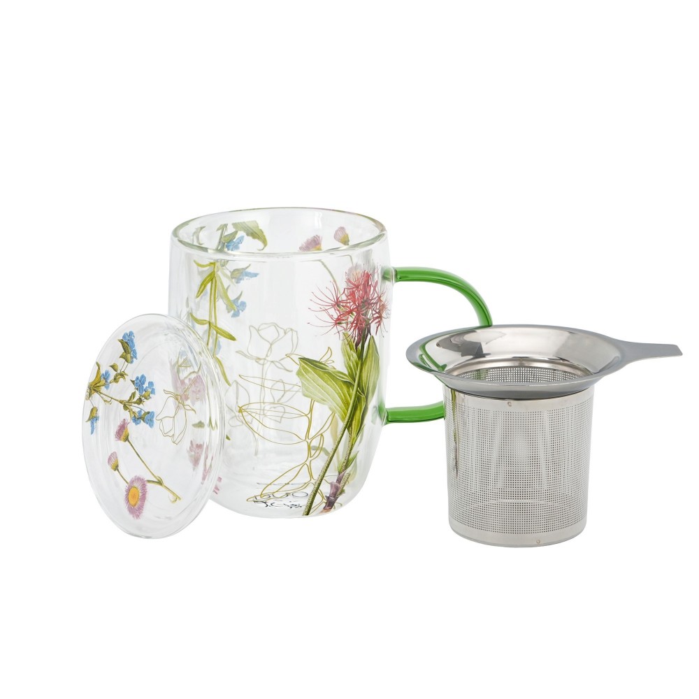 Elegantiškas ir praktiškas dvigubo stiklo puodelis su sieteliu ir dangteliu – puikus pasirinkimas arbatos ar žolelių gėrimų mėgėjams. Šis 350 ml talpos puodelis pagamintas iš aukštos kokybės dvigubo stiklo, kuris ne tik išlaiko gėrimo temperatūrą ilgiau, bet ir apsaugo rankas nuo karščio. Integruotas nerūdijančio plieno sietelis leidžia patogiai ruošti birią arbatą ar žoleles, o sandarus dangtelis padeda išlaikyti aromatą bei šilumą. Skaidrus dizainas subtiliai atskleidžia gėrimo grožį, o dekoratyvūs augalų motyvai suteikia išskirtinumo ir jaukumo pojūtį.