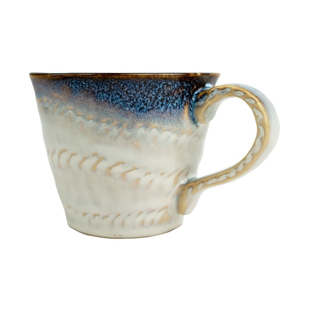 Puodelis ĮSPAUDAI, 250ml, mėlynu krašteliu, keramik.