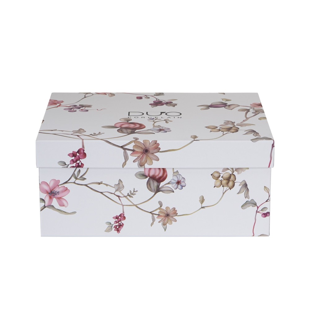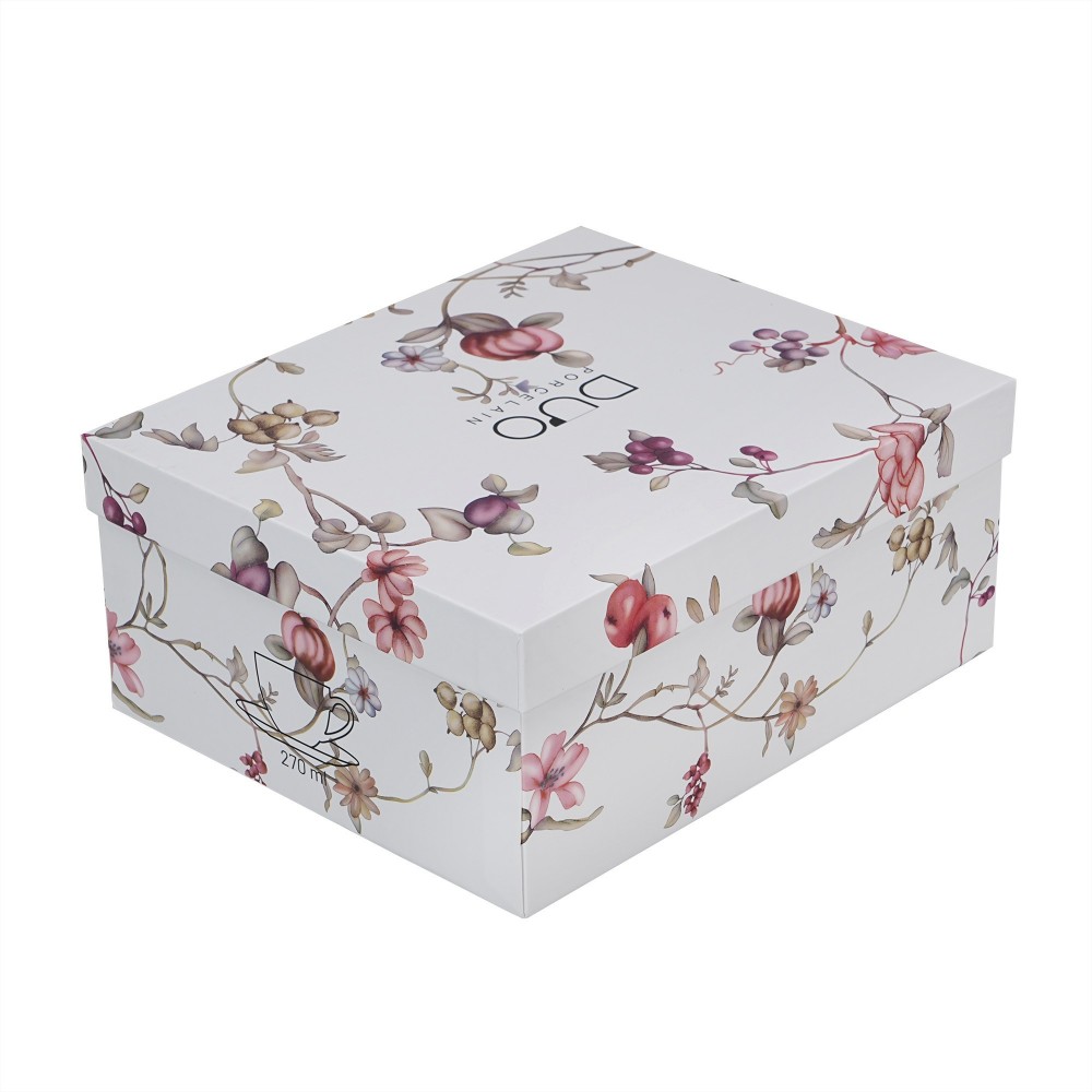Puodeliai pagamintas iš „New Bone China“ porceliano, kuriam būdinga natūrali kreminė balta spalva su subtiliu blizgesiu ir išskirtiniu tvirtumu bei ilgaamžiškumu. Supakuoti dekoratyvinėje dėžutėje su tuo pačiu motyvu, jie puikiai tinka dovanai.