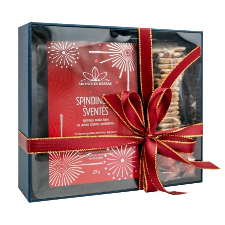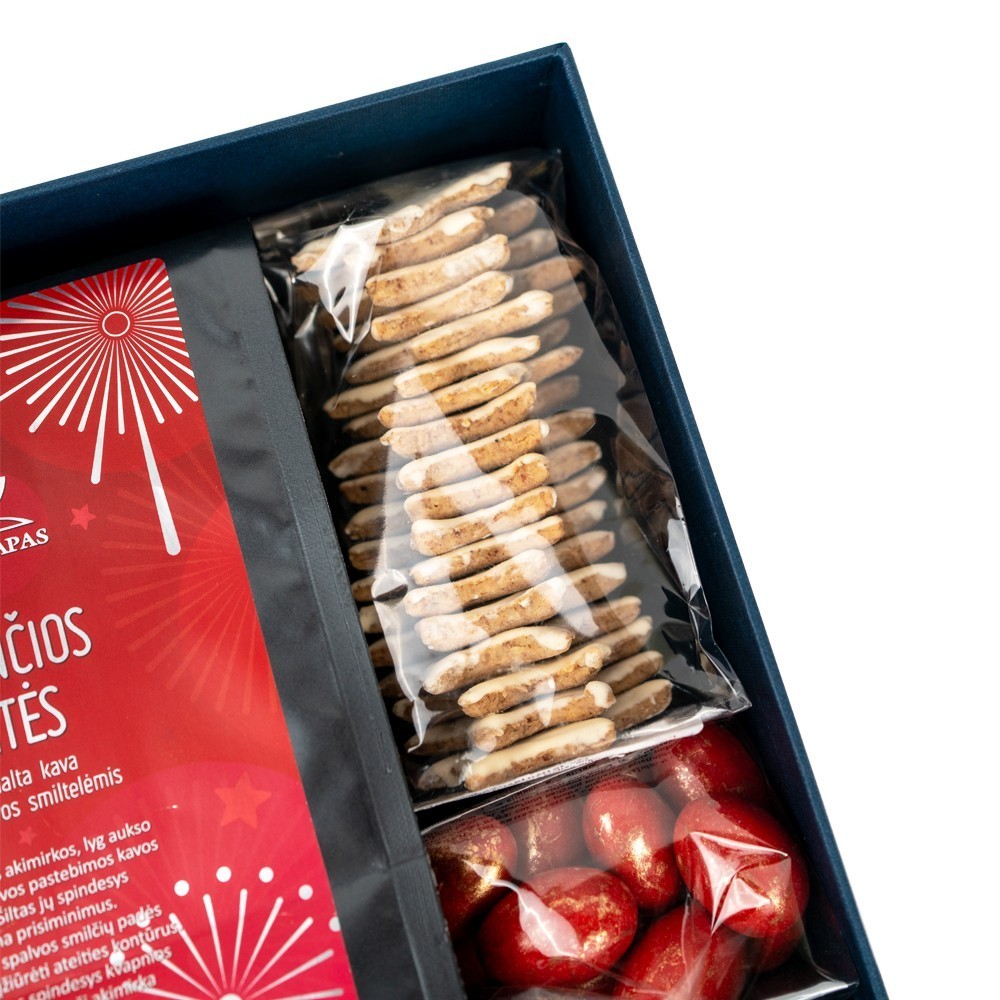 Aromatinga malta kava su subtiliomis aukso spalvos smiltelėmis dera su trapiais migdoliniais sausainėliais ir švelniais migdolais baltajame šokolade. Tai elegantiška ir skonių harmonija dvelkianti dovana, kuri pradžiugins kiekvieną saldumynų bei kavos mėgėją.