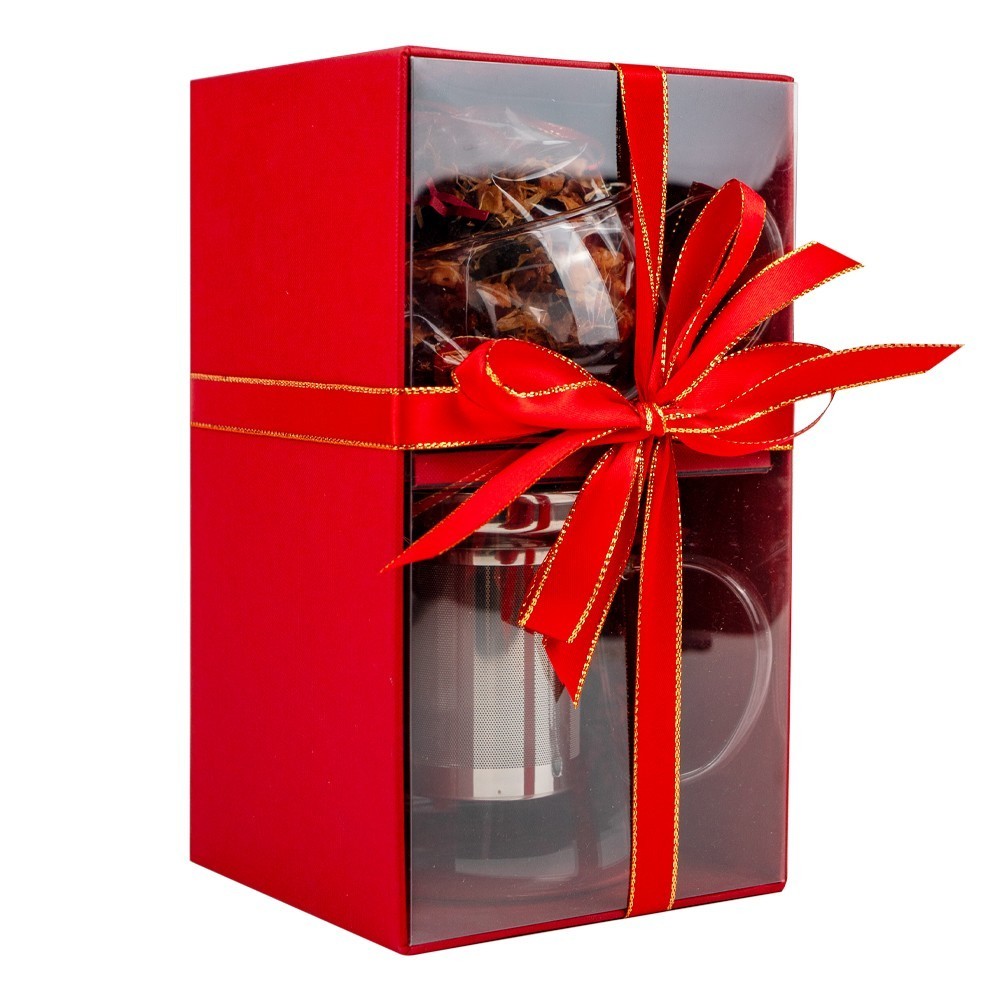 Praktiškas rinkinys patogiam arbatos ruošimui ir mėgavimuisi – arbatinukas, dvigubo stiklo puodelis ir vaisinė arbata sudaro tvarkingą, kasdieniam naudojimui tinkantį komplektą.