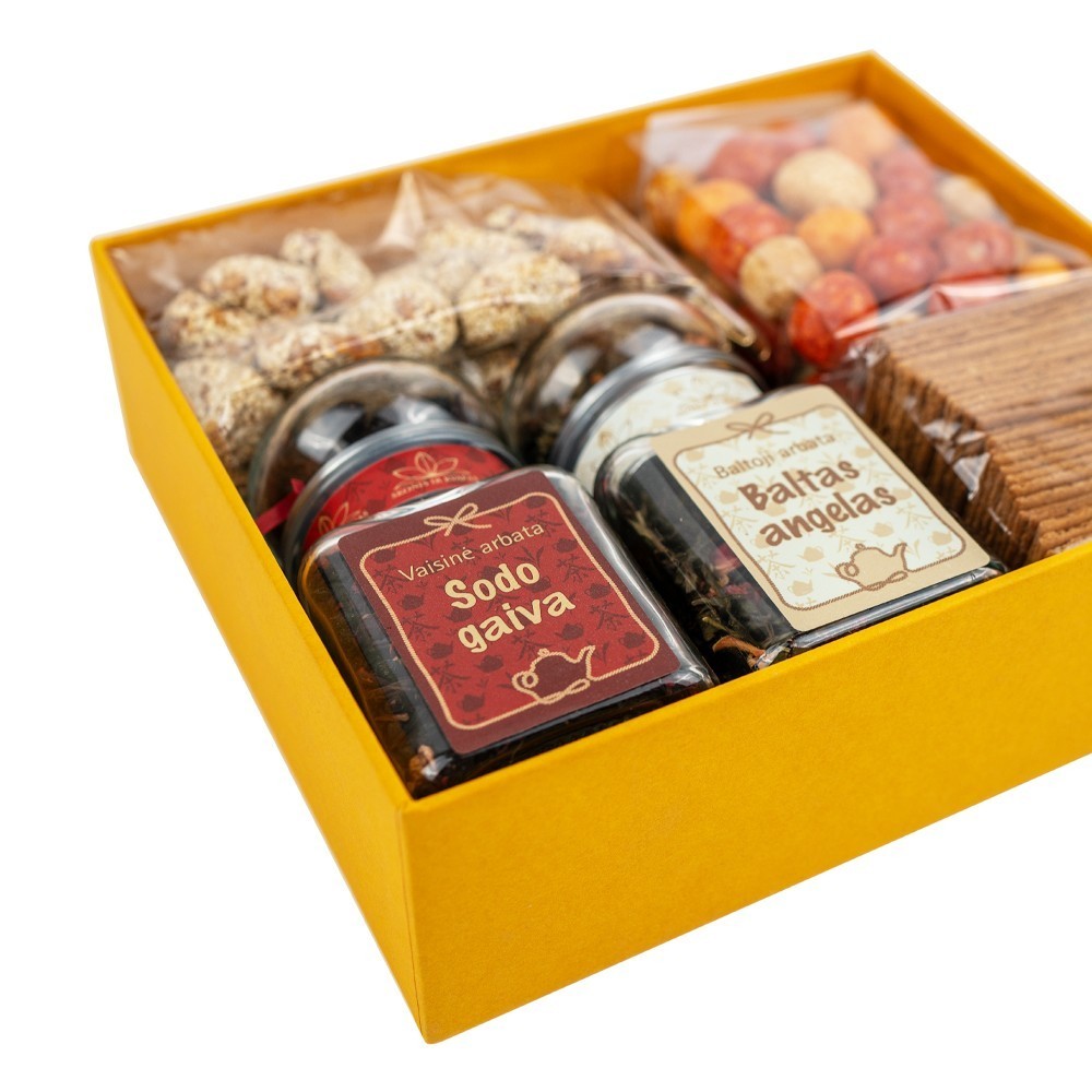 Švelnus ir jaukus rinkinys su lengvomis arbatomis bei subtiliais užkandžiais, skirtas ramiam pasimėgavimui ir trumpai atokvėpio pertraukai.